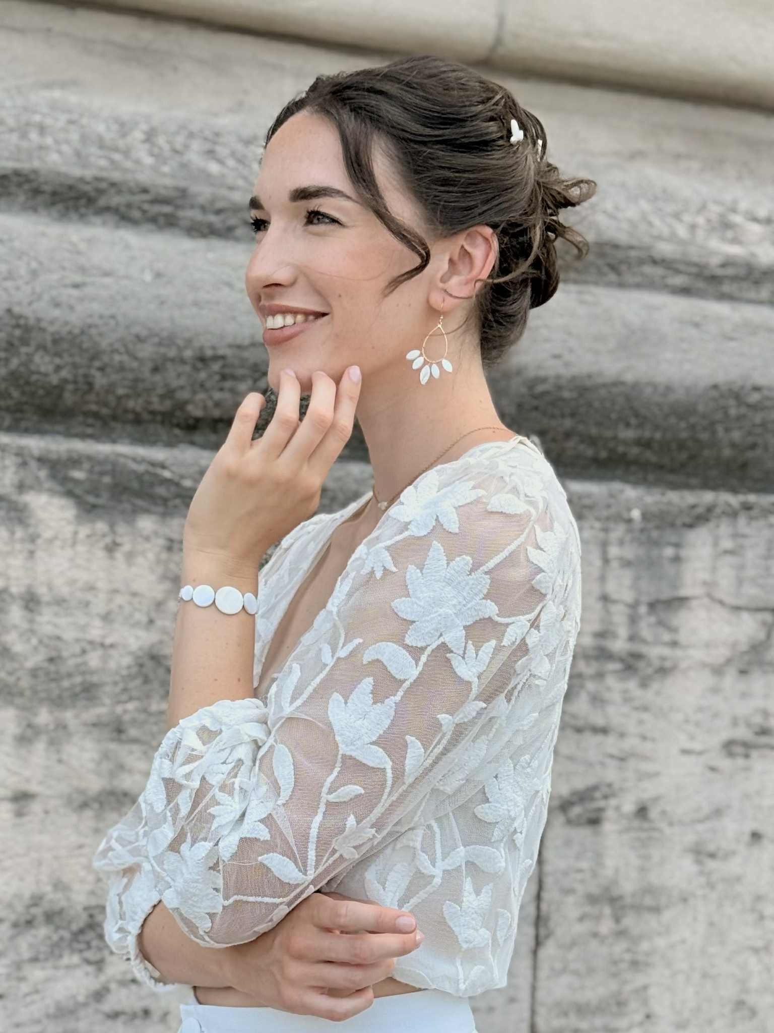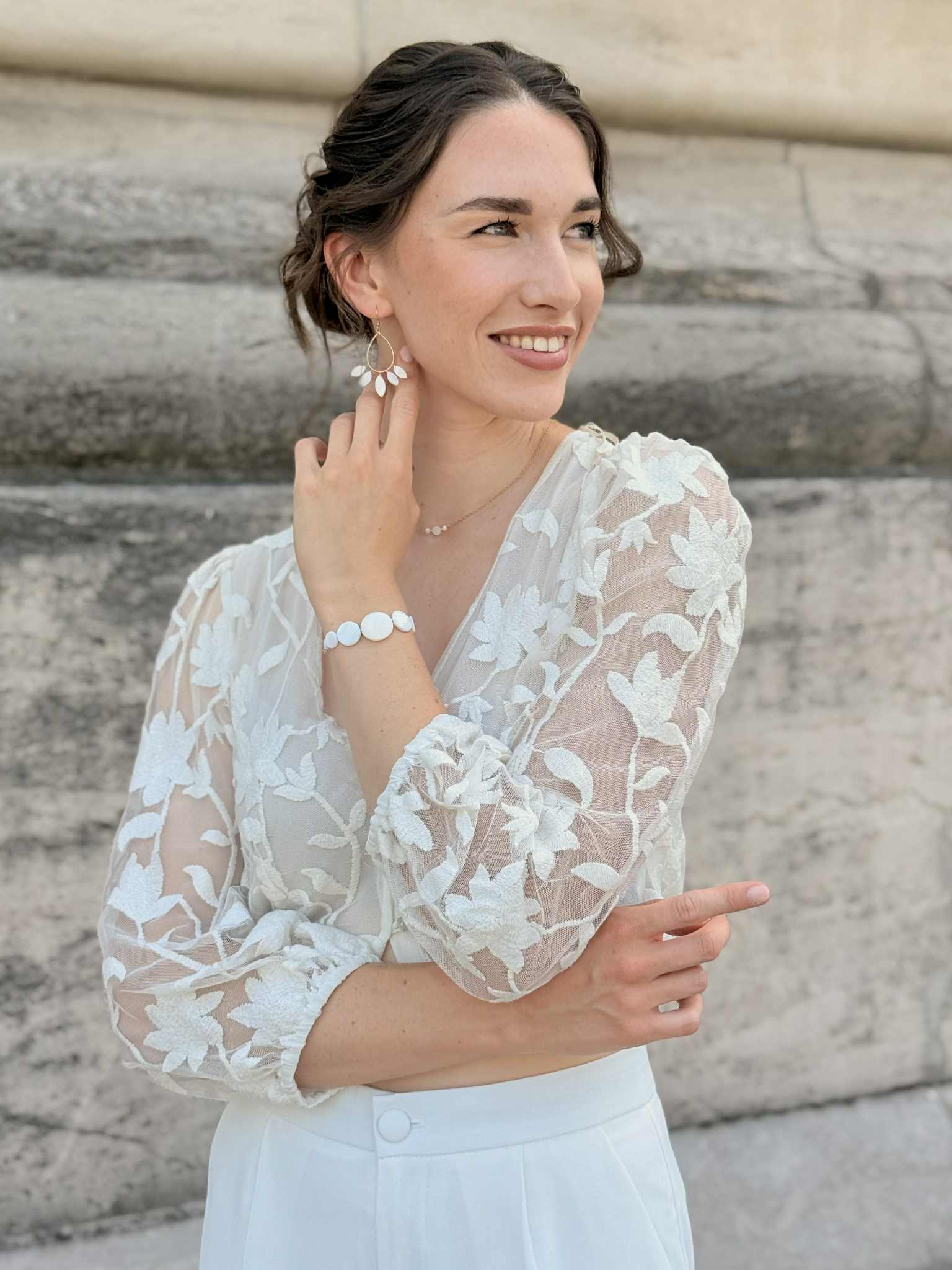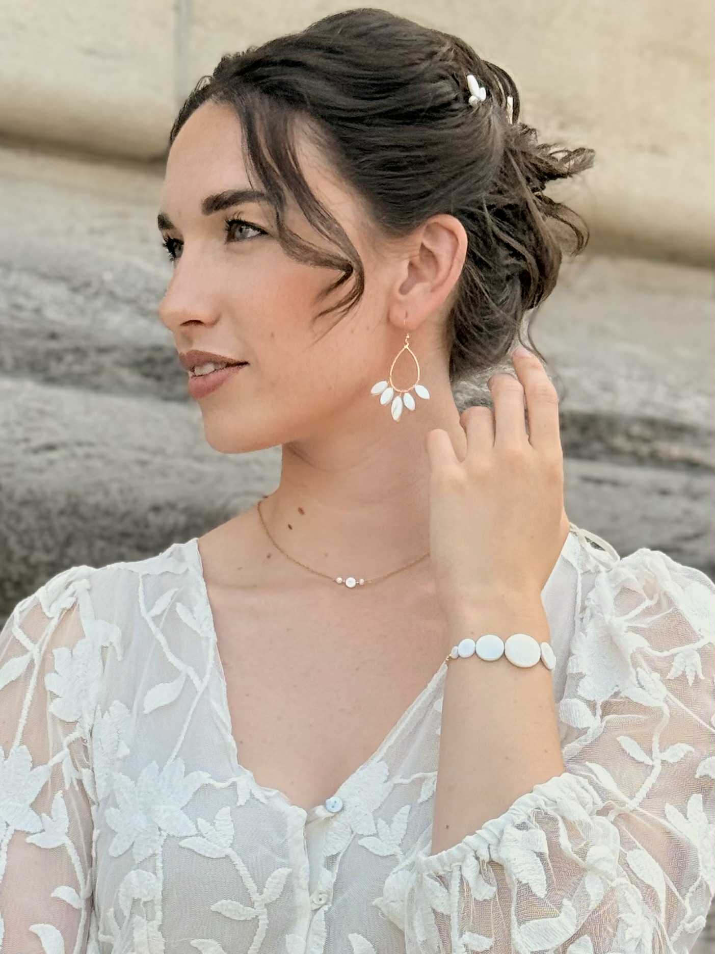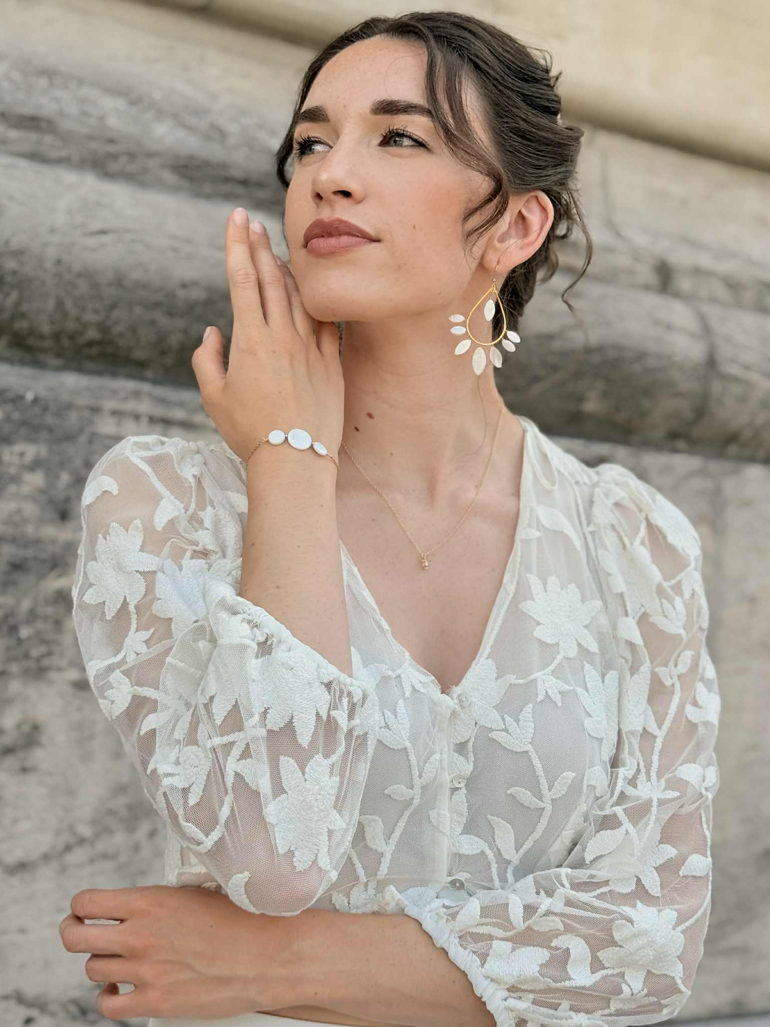 Chaque perle, nacre ou élément naturel est unique : forme, couleur et nuances peuvent varier d’un modèle à l’autre. Les photos sont indicatives et chaque pièce peut présenter de légères différences.