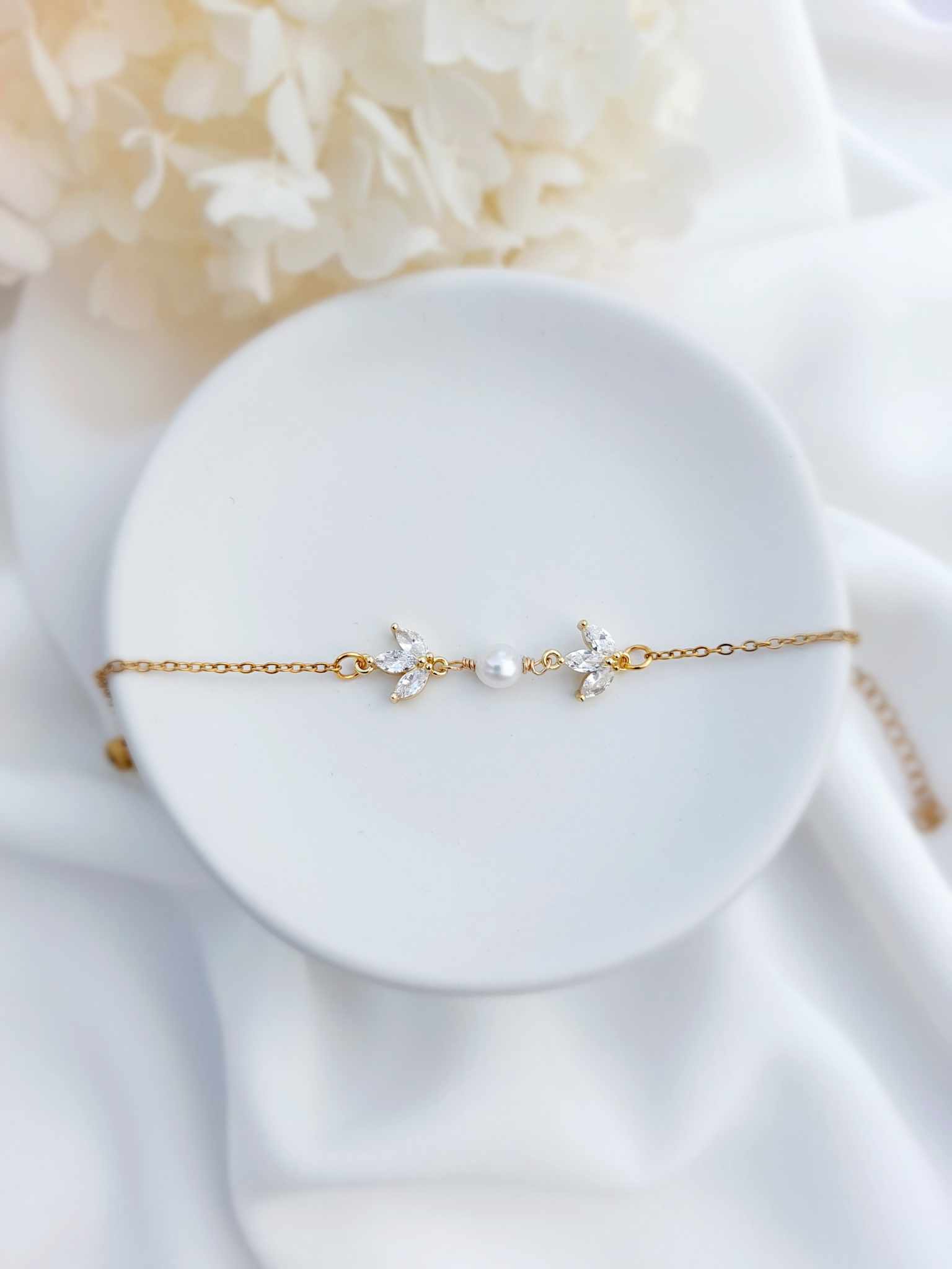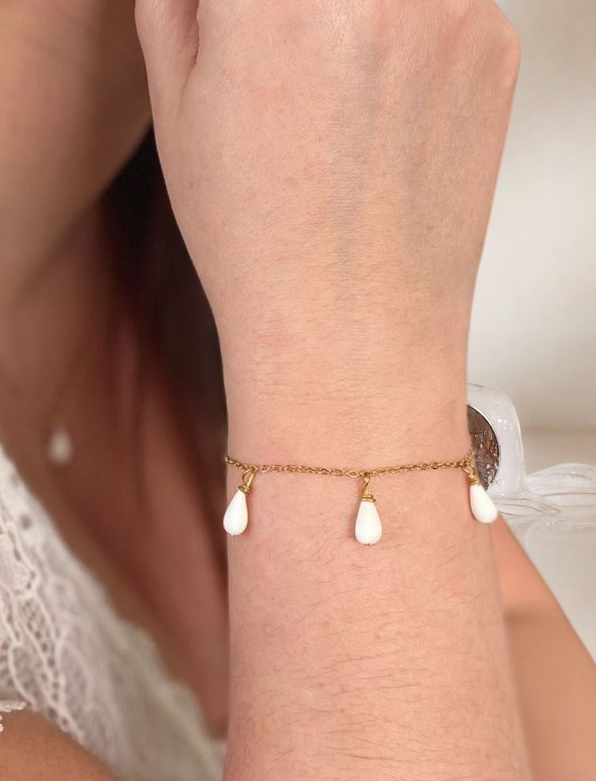 Bracelet Porcelaine et Goutte dorée
