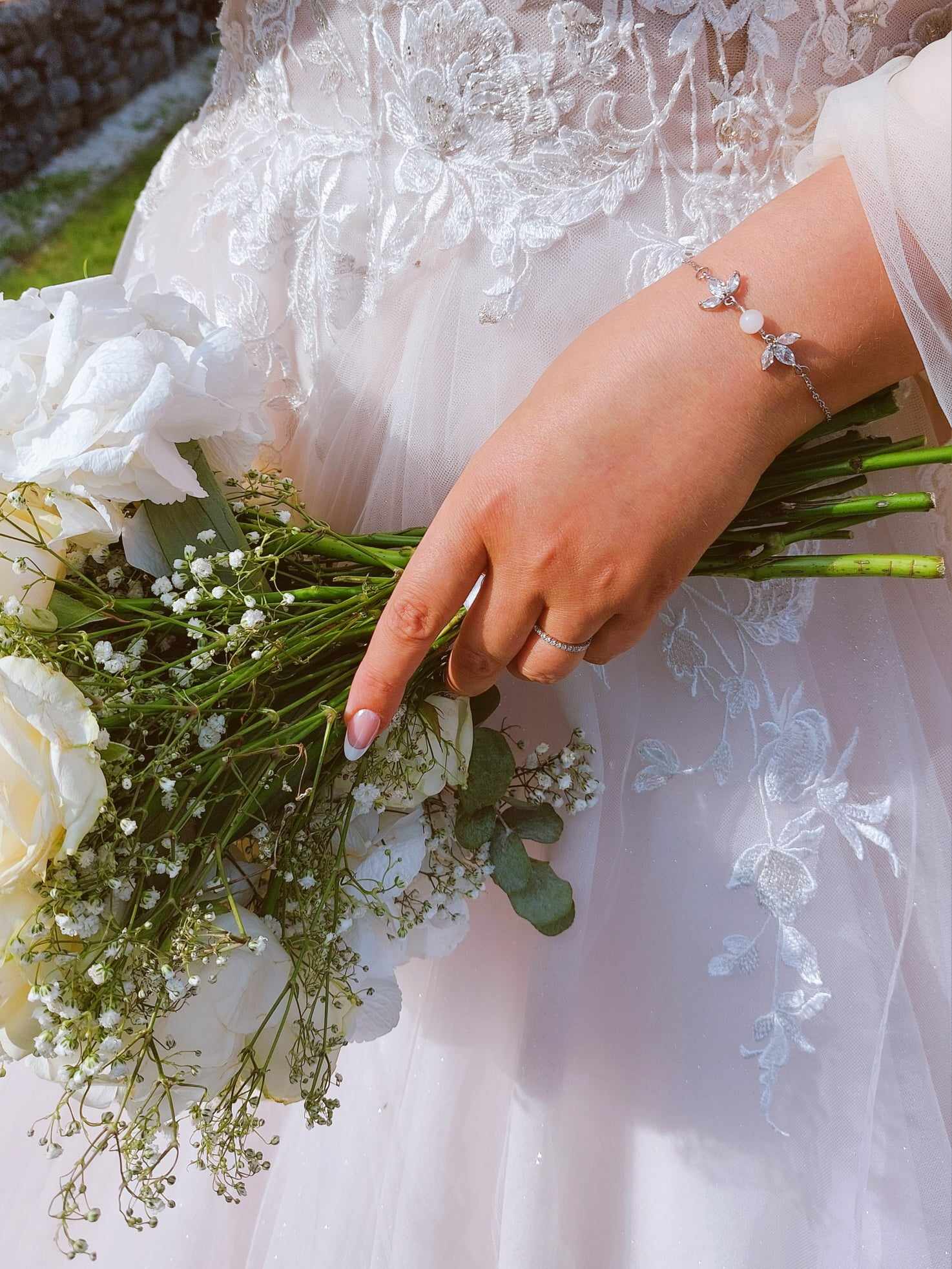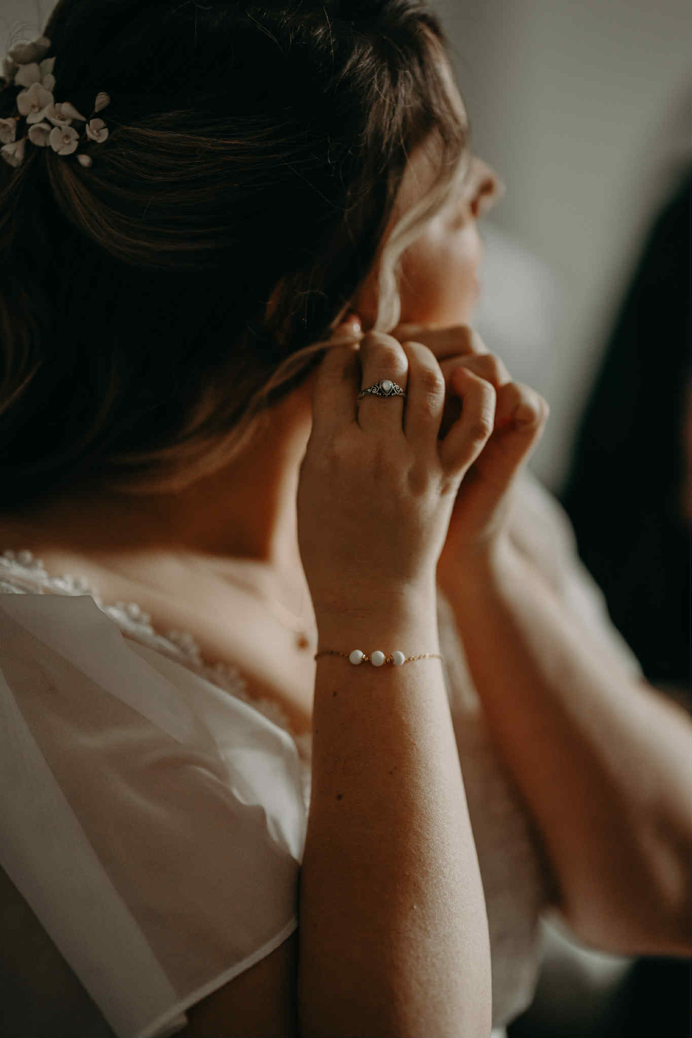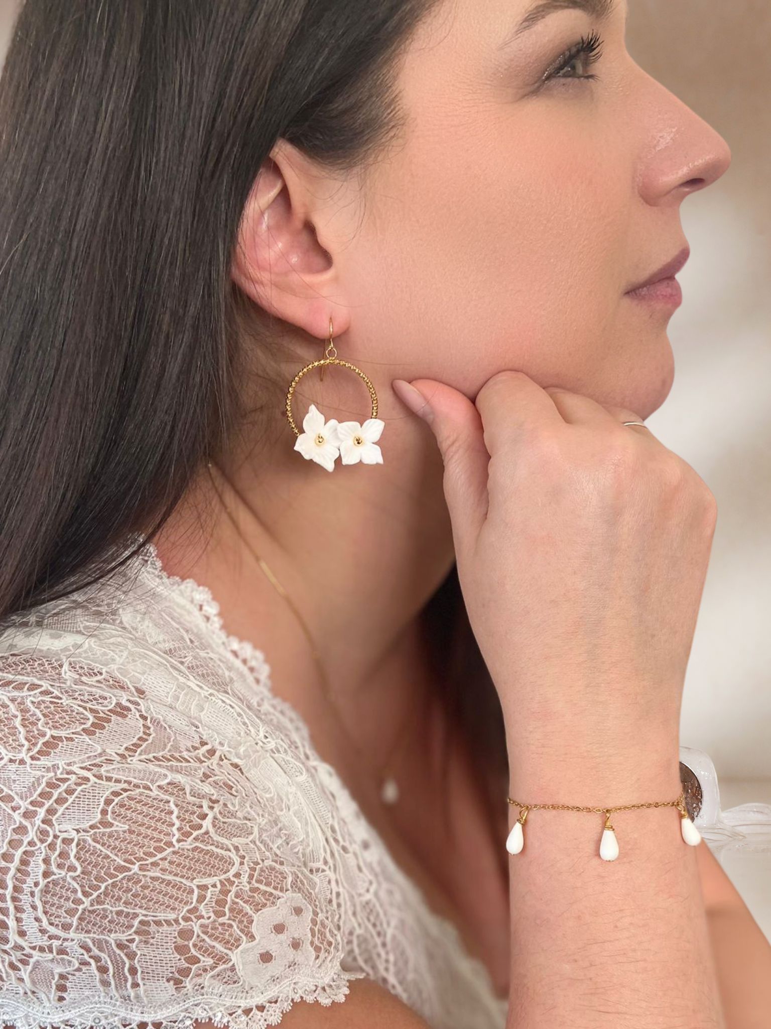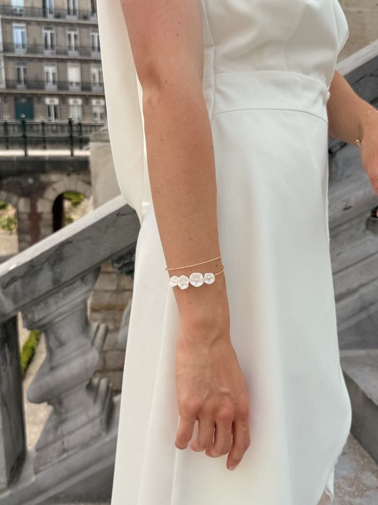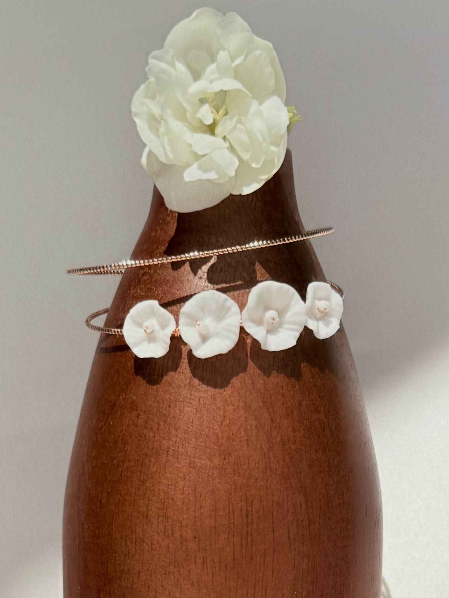 Bracelet jonc double & fleurs de porcelaine sculptées à la main – 45 € – Modèle délicat à manipuler avec précautions