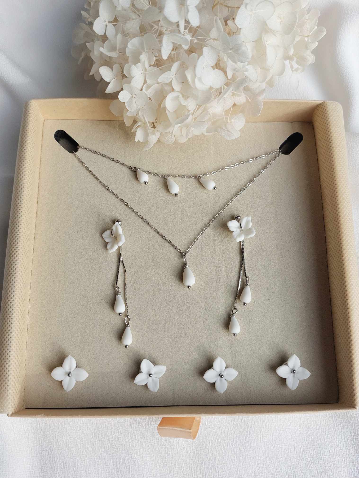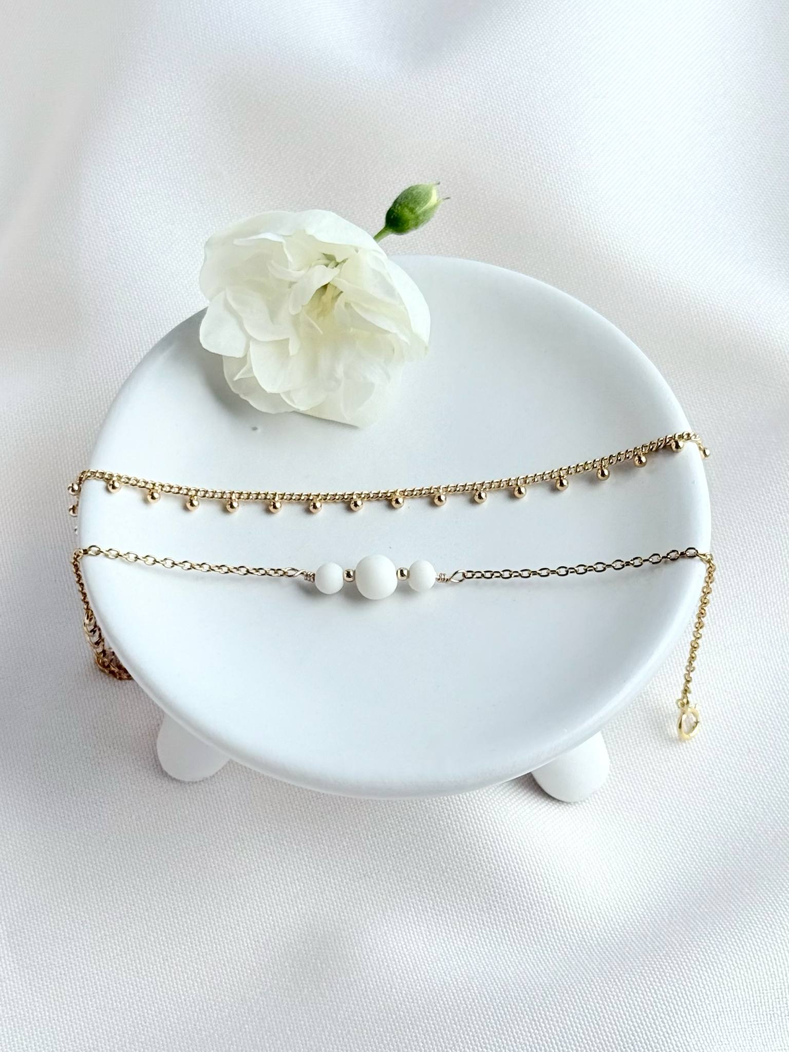 *Chaque perle et goutte de porcelaine est sculptée à la main, ce qui peut entraîner de légères différences. Ces subtilités uniques témoignent du charme et de l’authenticité du travail artisanal.