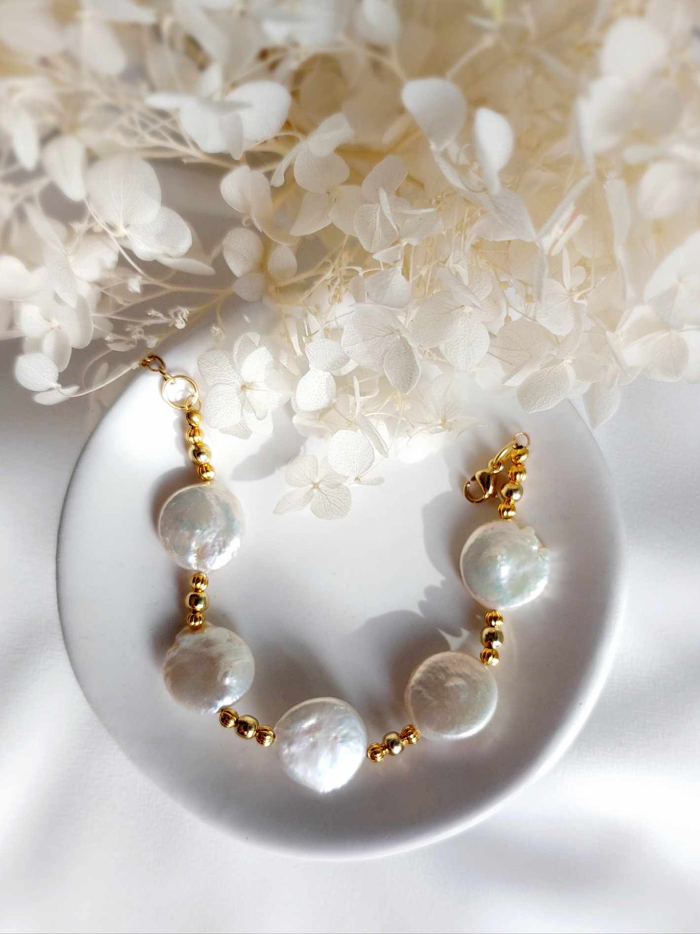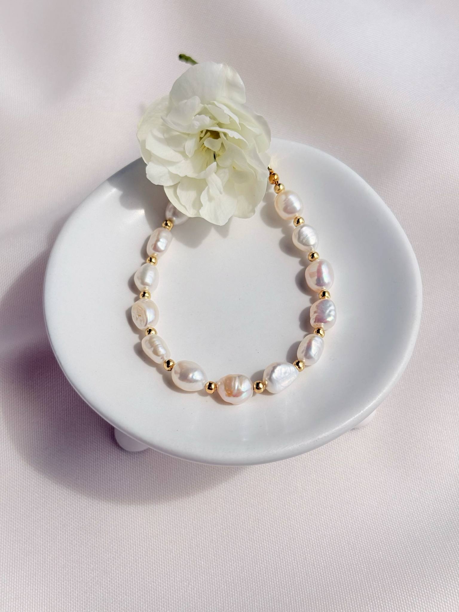 Perles dorées et Perles de Coquillage style Baroque –65 € –