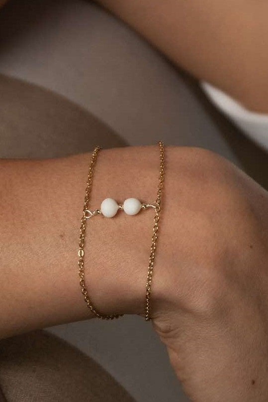 Bracelet avec deux perles * de porcelaine sculptées à la main – 45 € –