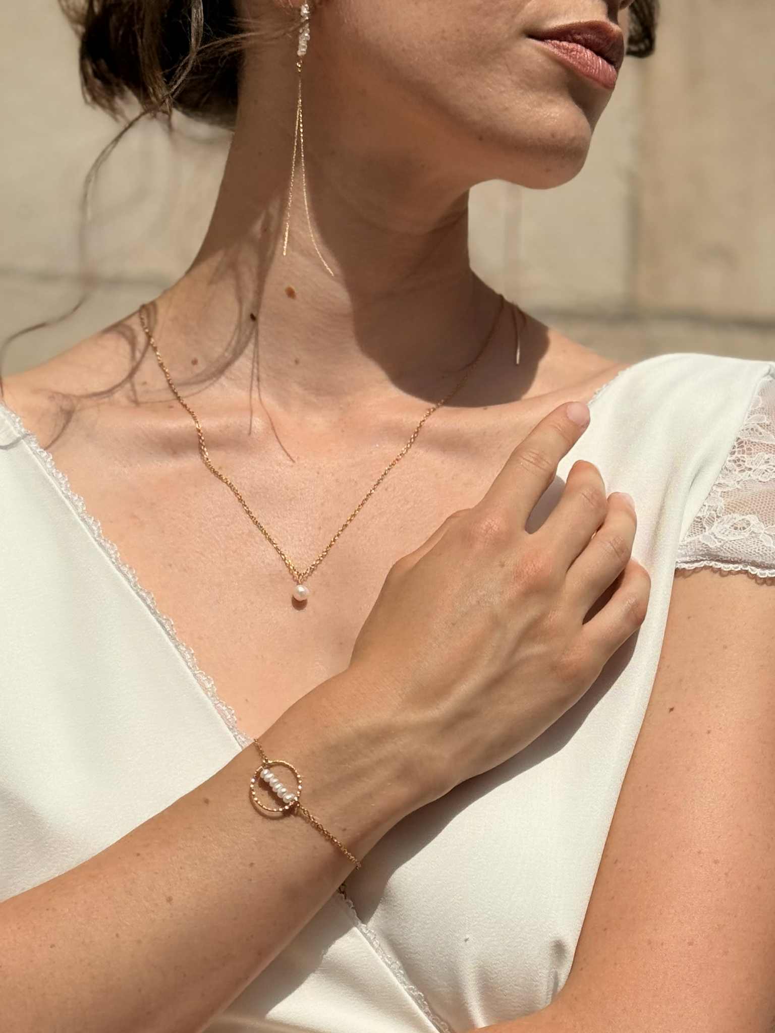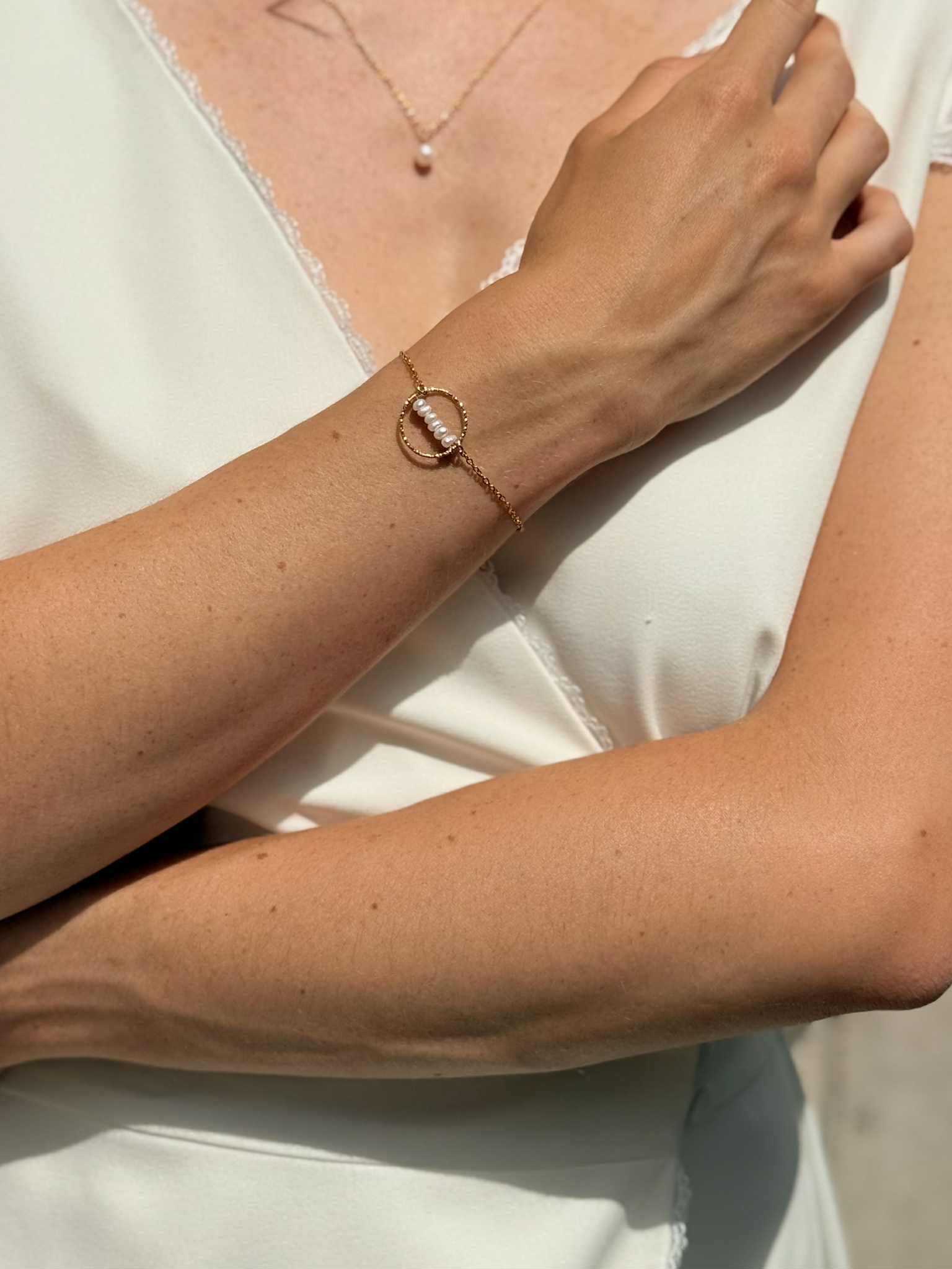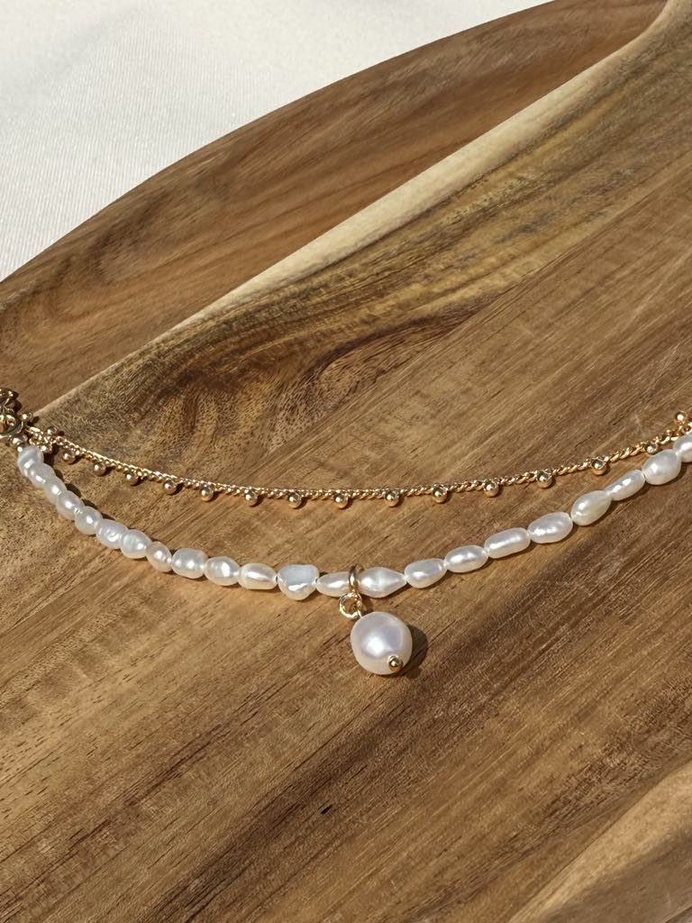 bracelet double avec ses 5 perles d’eau douce – 45 € –