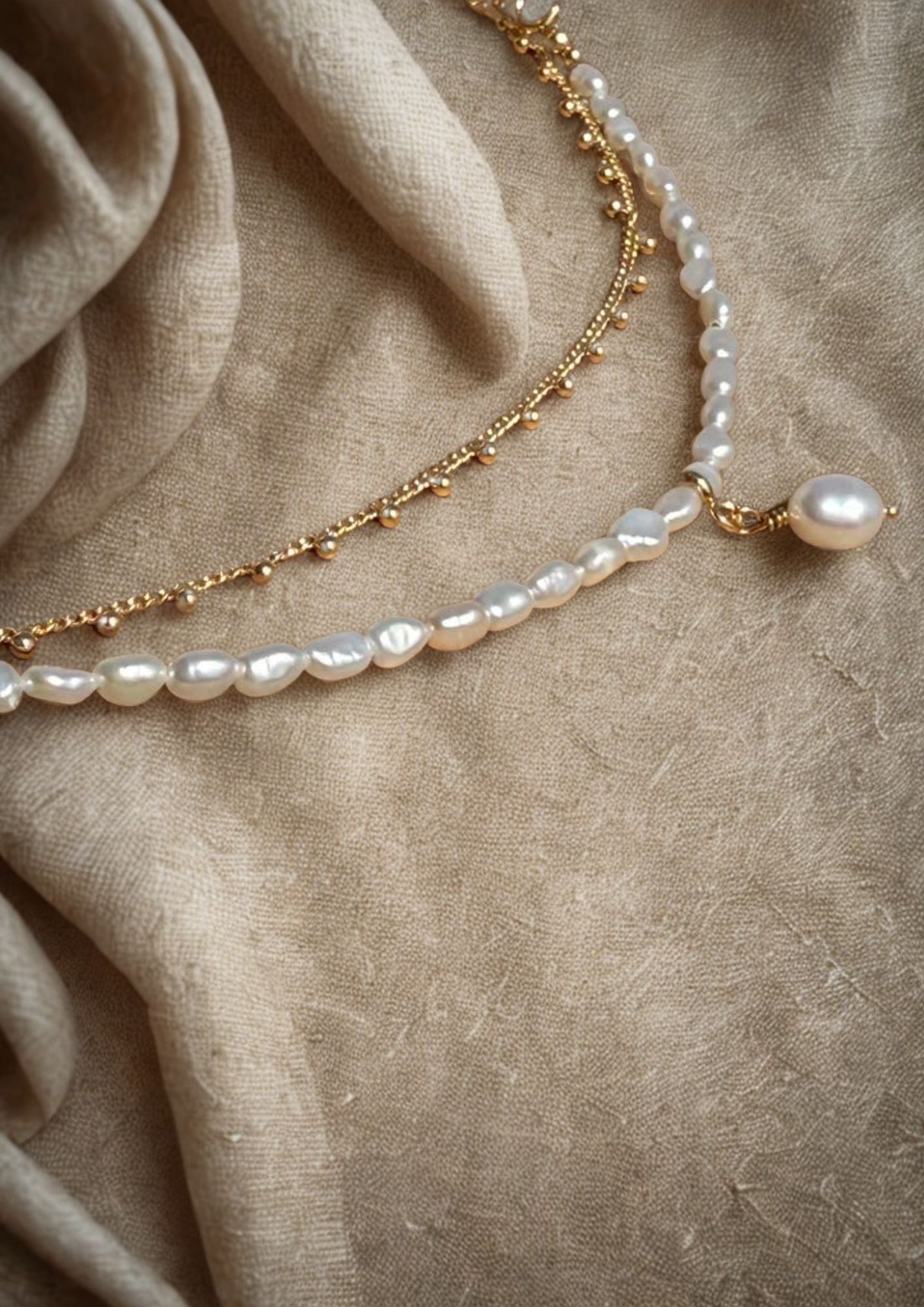 perles de culture et petites perles dorées – 70 € –