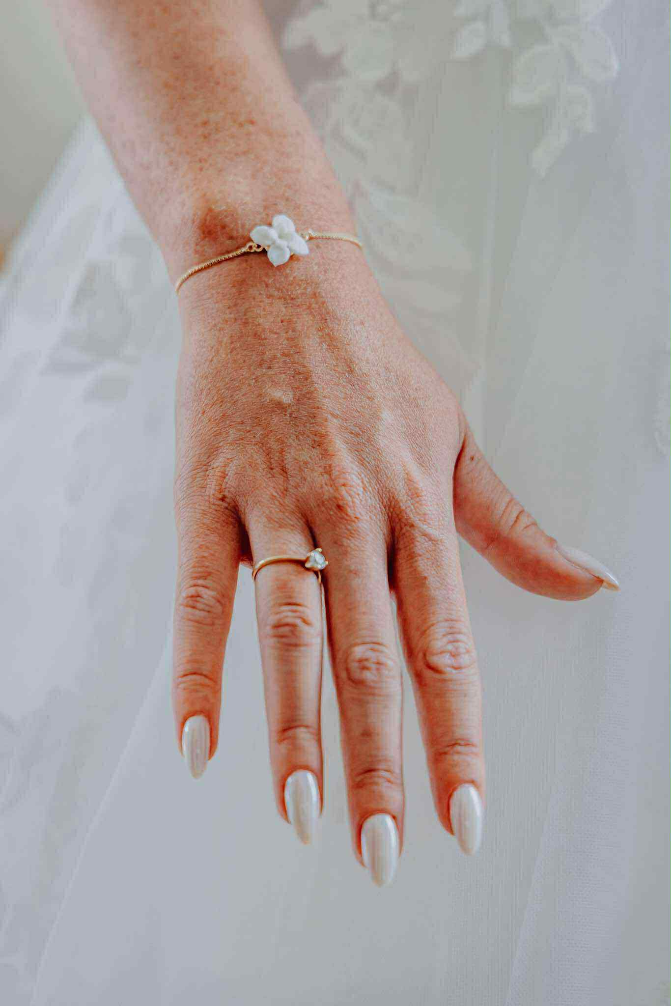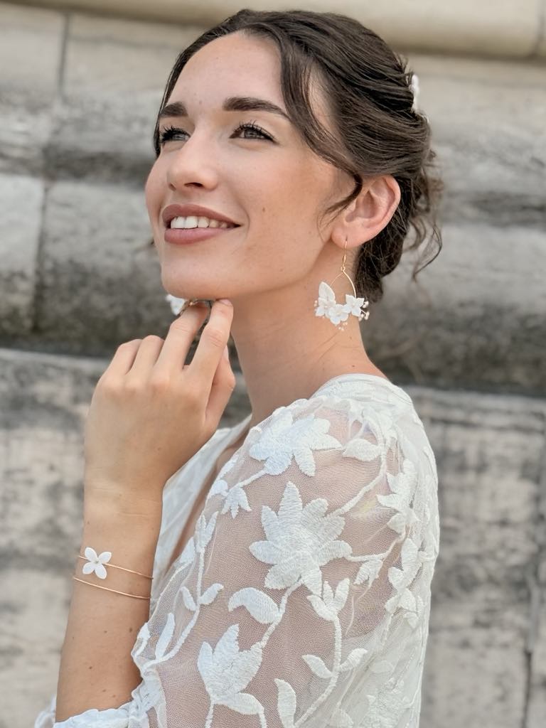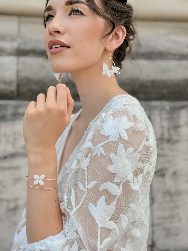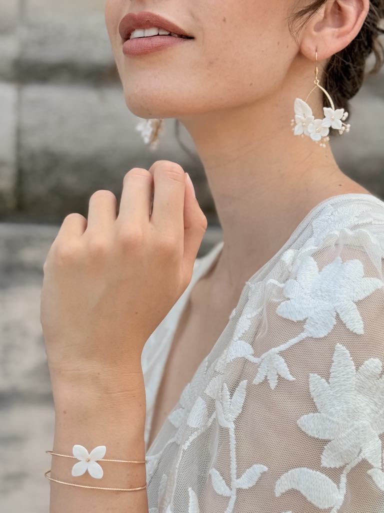 Bracelet jonc double & fleurs de porcelaine sculptées à la main – 45 € – Modèle délicat et à manipuler avec précautions