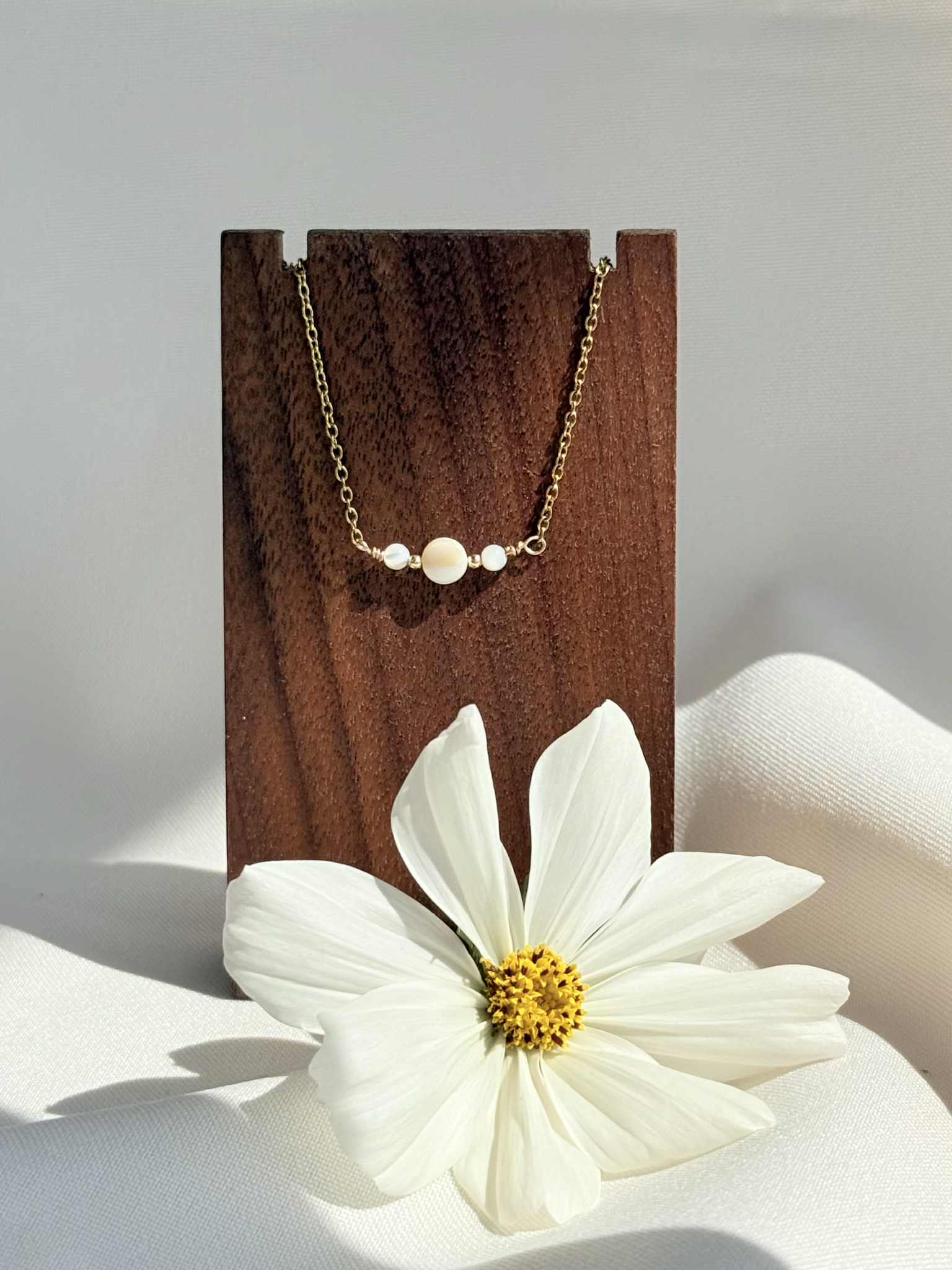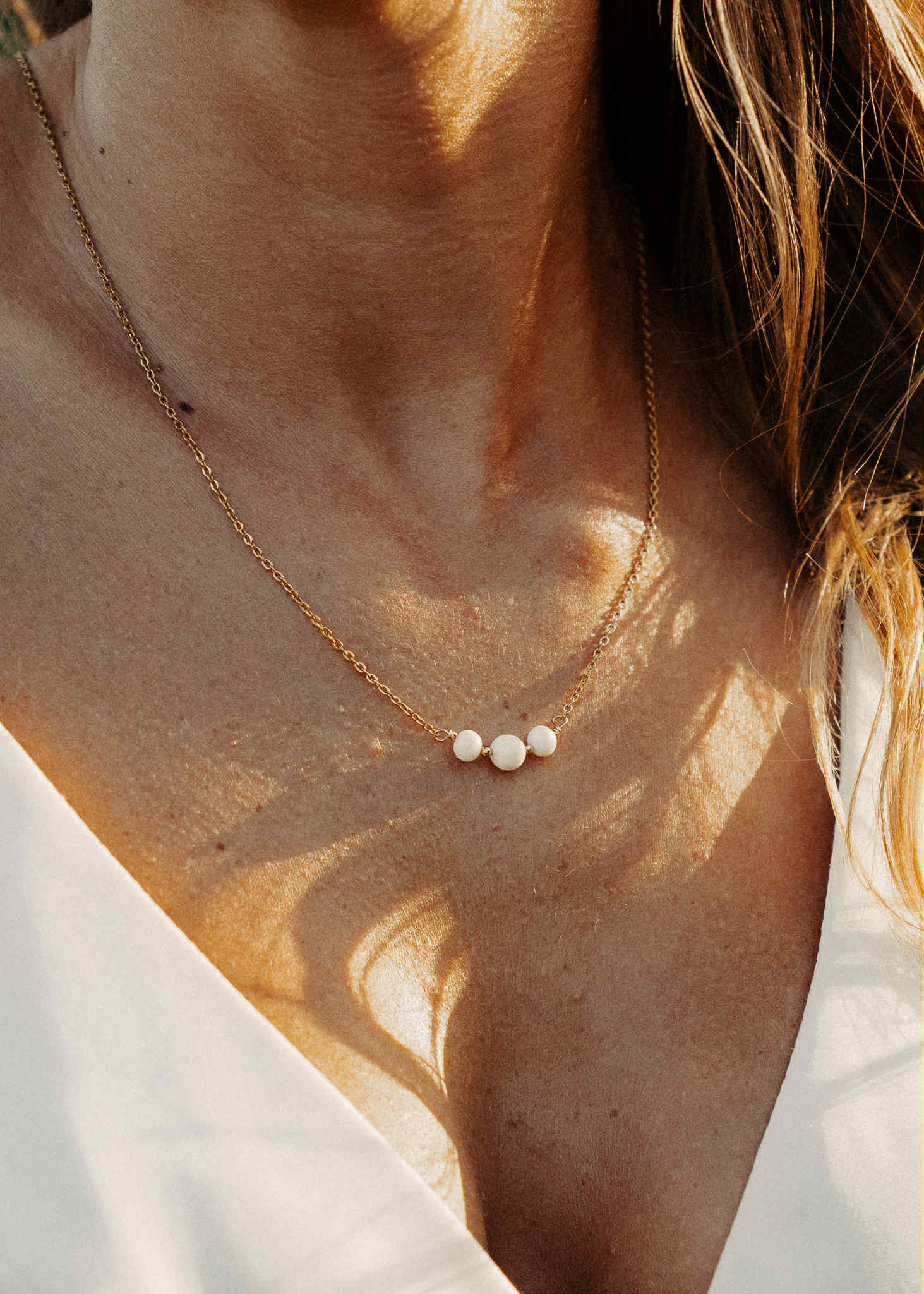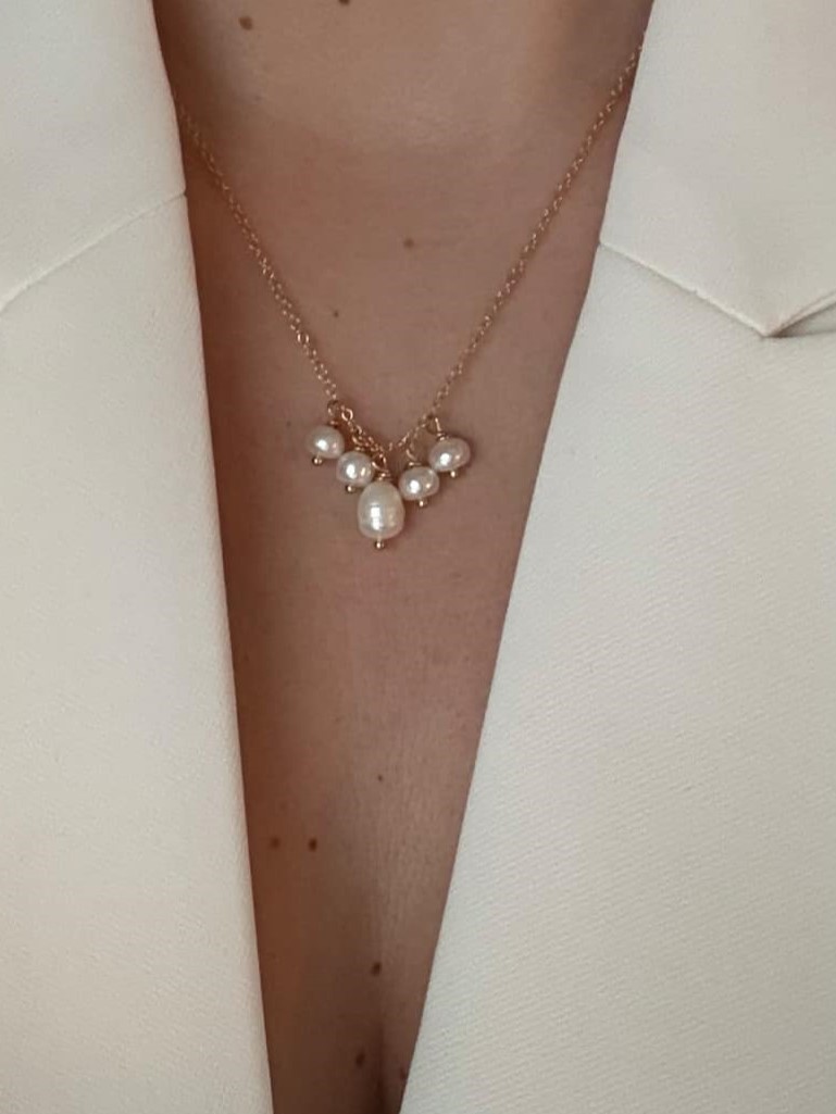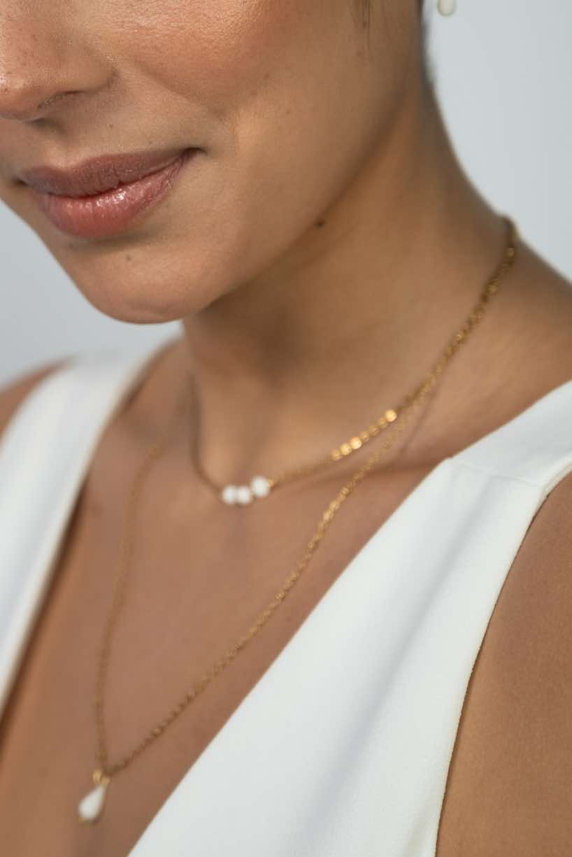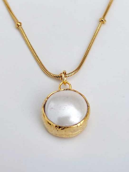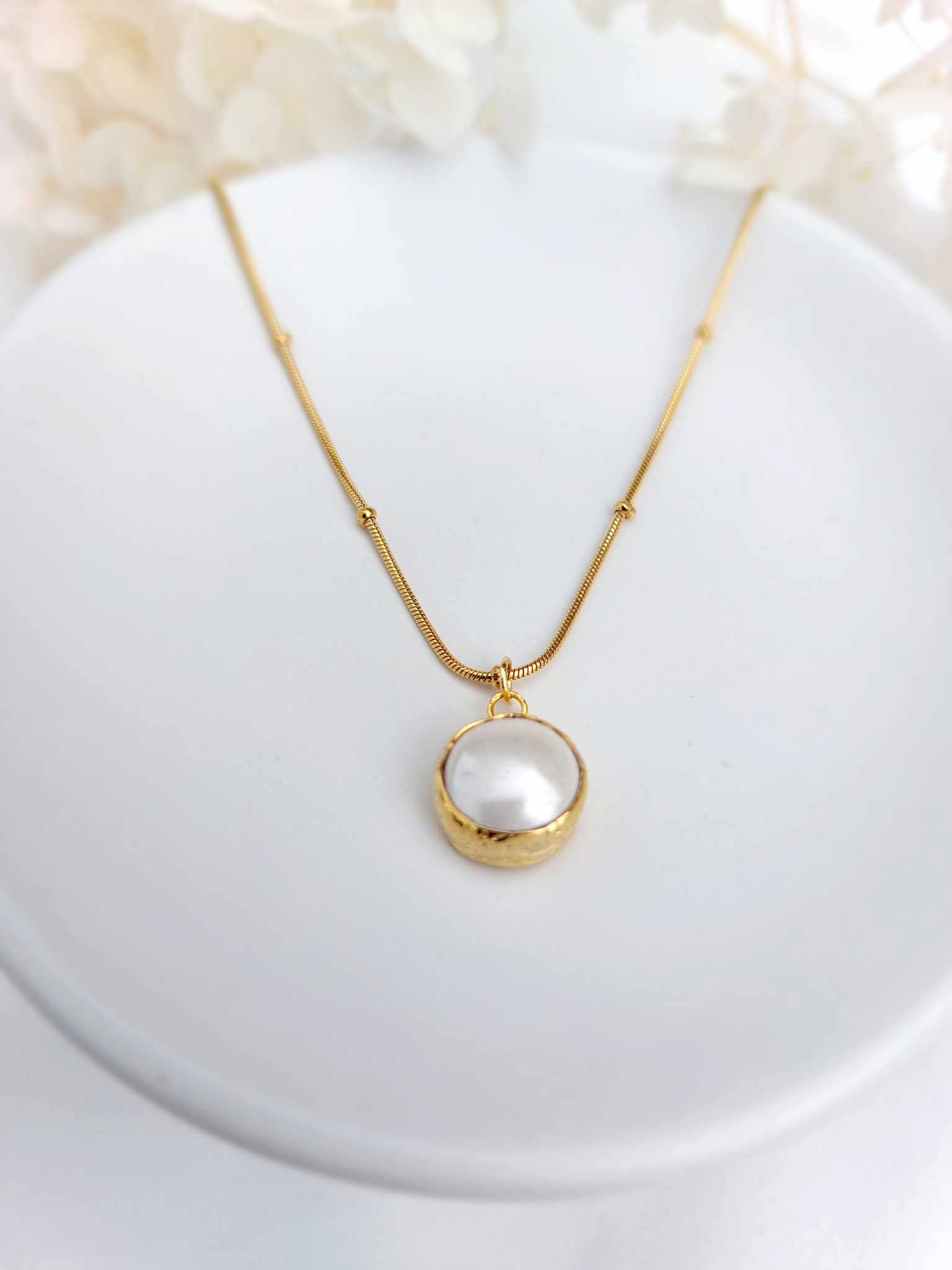 chaine dorée classique – perle de porcelaine sculptée à la main et petite perle de culture